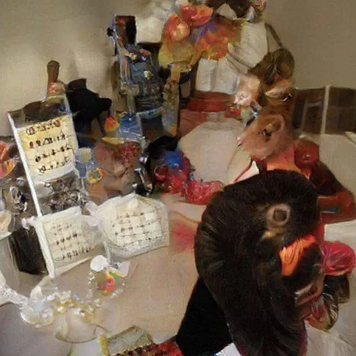 Can you name one thing in the image above? It all looks familiar, but something is off. The image makes “sense” overall; there are well-defined shapes and objects, that seem to be placed in a plausible - albeit chaotic - fashion, like some random rubbish thrown in the corner of a room. Even the colors, the lightning, the quality, is coherent, and helps making it believable. And yet, chances are you cannot name one single element that composes it.