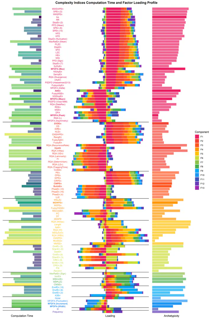 Complexity quantification, through entropy, information theory and fractal dimension indices, is gaining a renewed traction in psychophysiology, as new measures with promising qualities emerge from the computational and mathematical advances. Unfortunately, few studies compare the relationship and objective performance of the plethora of existing metrics, in turn hindering reproducibility, replicability, consistency, and clarity in the field. Using the NeuroKit2 Python software, we computed a list of 112 (predominantly used) complexity indices on signals varying in their characteristics (noise, length and frequency spectrum). We then systematically compared the indices by their computational weight, their representativeness of a multidimensional space of latent dimensions, and empirical proximity with other indices. Based on these considerations, we propose that a selection of 12 indices, together representing 85.97% of the total variance of all indices, might offer a parsimonious and complimentary choice in regards to the quantification of the complexity of time series. Our selection includes CWPEn, Line Length (LL), BubbEn, MSWPEn, MFDFA (Max), Hjorth Complexity, SVDEn, MFDFA (Width), MFDFA (Mean), MFDFA (Peak), MFDFA (Fluctuation), AttEn. Elements of consideration for alternative subsets are discussed, and data, analysis scripts and code for the figures are open-source.